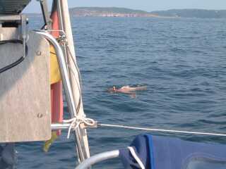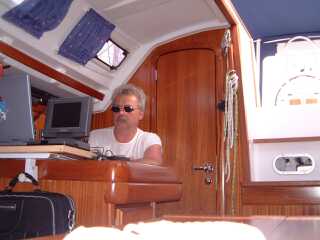 Spaeter im Cockpit auf meinem Stammplatz - die Rettungsinsel am Heckkorb - ein Bierchen in der Hand, zieht noch mal ein toller Toern an mir vorüber und irgendwo im Hinterkopf entsteht schon wieder die naechste Route..........