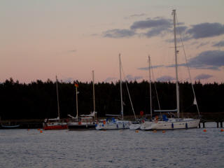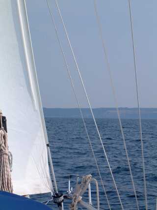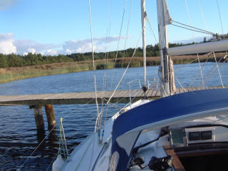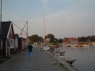 Bei aehnlichen Winden hatte ich einmal urploetzlich, verursacht durch eine Regenwand, Null- Sicht auf die Molen bei einem Abstand von ca´1/2 Seemeile - da bin ich doch vorsichtshalber wieder ein klein Stueck auf See gedreht - man trifft bei besserer Sicht einfach die Molenmauer genauer, ehm... ich meine natuerlich die Molendurchfahrt. Der Hafen ist ein wenig zu kommerziell fuer meine Begriffe aber man liegt gut und auf Grund der Beliebtheit bei den Chartercrews ist es ein sehr interessanter Hafen bei Starkwind.... (Charter-Skipper verzeiht mir und lest weiter...) Aber nicht nur der Hafen hat seine Reize auch ein Ausflug mit meinem kleinen Klappfahrrad oder auch per Inlinskater (wenn man nicht gerade auf MØn-Klint will) sollte nicht ausgelassen werden. Diesmal blieb aber alles in der Backskiste, ich hatte keine Lust den aufziehenden Nieselregen zu trotzen. Ein schoenes dickes Buch und meine "Steuerbord - Salon - Koje" reizt mich da viel mehr, ausserdem befinden sich in meinen Backskisten so leckere Dinge und ich habe nicht uebel Lust auf ein deftiges Bauernfruehstueck - das schmeckt auch abends und steht auf einen Lieblingsplatz in meiner Essens -Wunschliste! Kartoffeln, Zwiebeln, Eier sind fix vorbereitet und angebraten, oben auf die heissen Bratkartoffeln ein Scheibchen Suelze aus dem Glas, Zwiebel ,Oel und Essig und ein Glaeschen Rotwein rundet die Koestlichkeit dann ab! Der naechste Tag beschert mir nach einer verregneten Nacht wieder Sonnenschein und die Aussicht auf guten Wind fuer meinen Kurs auf die erste Etappe in schwedische Gewaesser. Mein Ziel, der Hafen von Gislovslaege, in Sichtweite von Trelleborg. Diesen Hafen hatte ich bislang auf meinen vorherigen Routen immer ausgelassen - zu unrecht, wie ich nun erfahren musste. Gislovslaege ist ideal anzusteuern und zumindest um diese Jahreszeit immer gut fuer ein ruhiges Plaetzchen in einer Box mit Heckpfaehlen. Ich konnte mir in aller Ruhe eine Box auswaehlen - wenn man Einhand unterwegs ist, dann ist dieser Vorteil nicht zu verachten: Ein Plaetzchen zum Anlegen gegen den Wind laesst keinen Stress aufkommen. Also zuegig eine freie Box ansteuern, die vorbereitete lange Heckleine mit Palstek ueber den Heckpfahl in Luv - bei moderatem Wind auch gleich noch die Leeleine - und dann mit Maschinenkraft langsam in Richtung Steg - Heckleine aus der Hand gefahren und nach Augenmass kurz vorm Steg aufstoppen, belegen, Maschine wieder moderat vorwaerts, begebe ich mich auf´s Vorschiff um die vorbereitete Vorleine in Luv auf dem Steg zu belegen. Alles Andere ist dann mit viel Zeit zu richten, Maschine aus und alle Festmacher klarieren - wenn fest dann gut! Diese Handgriffe gehen in Ruhe - aber doch zuegig von statten, je nach Windstaerke sollte man sein Schritttempo zum Vorschiff ein wenig erhoehen, erst wenn die Vorleine in Luv belegt ist, kann man sich sicher fuehlen. Wie so oft brauche ich aber an diesem Abend gar nicht auf den Steg hüpfen, denn ein Nachbarlieger nimmt sich meine Leine - die ich immer in einer losen Bucht ueber dem Bugkorb lege (im Vorhafen!!) - natuerlich auf der Bugklampe belegt - und nimmt mir diesen Handgriff ab. Als er nach der Leeleine fragt winke ich ab und bedanke mich - habe die Achterleine in Lee wieder mal nicht ordentlich ueber den Pfahl bekommen - muss mich also noch mal nach achtern verholen - mit "leiser" Maschinenkraft und einer Luv-Vorleine auf Slup absolut ein Kinderspiel - aber zuerst kommt das "Ritual": Ein Bierchen, ein Pfeifchen und der entspannte Rundumblick durchs Hafenrevier - das ist "Gesetz" - tja und was ich hier auffange, dass gefaellt mir erst mal nicht schlecht. Ich vermerke spaeter im Logbuch: anlaufen lohnt sich - in der Vor- und Nachsaison will kein Hafenmeister auch nur eine Krone... SCHWEDEN ist SCHOEN!!!!! Spaeter starte ich zu einem Landgang um mir die Umgebung ein wenig anzuschauen. Bei schoenem Sonnenschein macht die Gegend einen netten Eindruck und schon wieder finde ich ein Plaetzchen, von dem ich traeumend als meinen "Altersruhesitz" begeistert bin - noch in unmittelbaren Kontakt mit dem Hafen, natuerlich mit Blick auf denselben, ist es ein ganz kleines Haeuschen, was sich an das Ufer duckt und meine Begehrlichkeit weckt. Aber zurueck in die Wirklichkeit und die ist ja auch traumhaft schoen: meine "Zephir" - heute verlangt sie noch fix nach einer Decksbuerste. Das strahlend weisse Gfk- Deck hat bei gewissen Lichtverhaeltnissen den Effekt, mich zu einer Grobwaschung desselben anzuregen. Aber es ist nur leichter Schmutz - mit Deckschrubber und Hafenwasser abbuersten, fix ein wenig trocken reiben - sonst hat es sofort wieder Schmutzraender und Tapsen...fertig! Man glaubt nicht, wenn man es nicht mit eigenen Augen sieht, wie viele Schmutzteilchen so mal ganz nebenbei mit der "steifen Brise" an Bord geweht wird, in der doch vermeintlich industriell wenig belasteten Kuestenregion. Wenn ich mir aber ab und an mal so die groesseren Frachter am Schornstein (sprich neudeutsch: Auspuff) besehe, dann erkennt man schon an der Farbgebung den enormen Durst mancher Antriebsmaschinen, die schlechte Qualitaet und die bescheidene Verwertung des Treibstoffes kroent das Ganze. Um es mal auf den Punkt zu bringen, dass solche Seelenverkaeufer noch auf den Weltmeeren unterwegs sein duerfen verdanken wir der ach so fortschrittlichen Oekopolitik, einschliesslich aller Fraktionen und Laender - weltweit wohlbemerkt! Aber wieder zu erfreulicheren Anblicken: der naechste Tag bringt Sonne, Wind um 4Bft und einen Kurs der sich gegen die Windrichtung schmiegt - ganz eng und hoch - wenn ihr wisst was ich meine! Nun ist ein Kurs hoch am Wind nicht das Schlechteste was ich mir beim Segeln wuensche - wenn die Welle moderat ist, dann gehoert solch Kurs sogar zu meinen Lieblingen - auch der Autopilot mag es lieber von vorn oder vierkant - dwars kommt er schon mal in´s Schwitzen - und macht noch betraechtlichen Laerm dazu, vor allen wenn´s brettert! So aber freue ich mich schon auf die herrlichen Wassergeraeusche an 