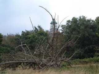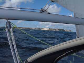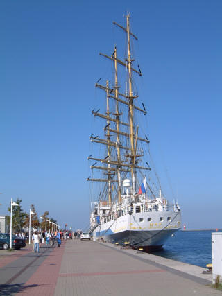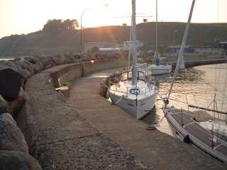 Nun wurde es aber schon wieder Zeit fuer mich, die Insel zu verlassen, denn die Urlaubszeit geht nicht ewig und ich will ja - ohne zu hetzen oder unter Zeitdruck zu geraten - noch ein wenig an der deutschen Ostseekueste entlang "bummeln", denn zwischen Usedom und Fehmarn gibt es sicher noch so manche kleine Oase. Also auf zum "langen Schlag" - Kurs SSW - das Ziel heisst grob "Tromper Wiek" und da zieht es mich in den Yachthafen von Lohme. Es sollte ein toller Segeltag werden, herrliche 5 Bft und wenn der Wind aus West kommt, dann ging es hoch am Wind mit bis zu 8 Kn in Richtung Heimatland. Als ich nach GPS noch ca´ 6-7 Seemeilen bis Lohme vor mir hatte, ging es wieder los - diese innere Automatik loest es aus: Ist schon Kueste zu sehen? Wie gut wird mein Landfall? Aber - nichts zu erkennen. ein wenig spaeter - Ausguck - noch nichts, auch mit Glas - nichts zu erkennen. Na, noch ein wenig warten, die Luft kommt mir ein wenig diesig vor..., dann sind es noch 4 Sm- immer noch nichts!! Das kann doch nicht sein? Und dann geht es los: Position checken, GPS-Ort mit Kopplung vergleichen; wieder Ausschau - immer noch nichts - GPS pruefen - geht einwandfrei, noch mal Position einzeichnen - bis Ansteuerung Lohme noch 2 Sm - Ausguck - nichts! Da - etwa eine 1/2 Sm vor mir quert ein, was ist es eigentlich? Ah, ein Fischer! aber wo will der denn hin - ich bin doch schon so tief im Tromper Wiek und sein Speed laesst freien Seeraum vermuten? - noch keine Landsicht! Da werde ich doch tatsaechlich ein wenig unruhig! Noch eine Sm bis zur Hafeneinfahrt Lohme, aber kein Land in Sicht!! Jetzt hole ich mein Hand-GPS und schalte es ein und nach kurzer Zeit zeigt es korrekt die gleiche Position wie der Laptop! Nun gehen meine Gedanken schon in Richtung Allgemeiner GPS-Fehler - haben die Amis Krieg - haben sie wieder die Werte verfaelscht? Was ist aber mit meiner Koppel-Posi? Alles ist im Toleranzbereich! Nochmals das Fernglas - nichts! Als ich das Glas absetze, da sehe ich am Horizont so eine komische Erscheinung, so als waere da was - dann war´s wieder weg! Da wieder - ein dunkler Schatten, ja das ist ein Kuestenstrich, ganz sicher!! Noch eine Knappe Meile bis zur Hafeneinfahrt....aber kein Hafen, nur ein schwacher Kuestenstreifen! Und nun geht es Schlag auf Schlag: Der Kuestenstrich wird immer dunkler und hoeher - rechts von mir etwas voraus eine Yacht schaelt sich aus dem Dunst - Kurs? - gleich meinem! Na da wird man doch schon wieder ein wenig ruhiger! Zwei Yachten auf dem gleichen Fehlkurs? Fast ausgeschlossen! Und dann lichtet sich der Dunst mit einem Schlag: Die Hafenmole von Lohme, die imposante Treppe in der Steilkueste, die Ansteuerungsbojen - alles klar und etwa eine 1/2 Sm entfernt! Na da ist man doch wieder stolz wie Oscar, im Blindflug genau vor die Tuer!! Nun aber langsam an die Anlegemanoever gedacht! Ziemlich heftiger Wind - es schwankt in den Boen so um 5 - 6 Bft, also erst mal das Gross weg, dann die Fock noch ein wenig gerefft und den Motor an - im Leerlauf - versteht sich! Sicher ist sicher, erst wenn der Jokel brummt, kann man sich sicherer fuehlen.der Wellengang ist ziemlich konfus, eine dumme Querduenung liegt vor der Molendurchfahrt und ich entschliesse mich fuer Motorspeed - etwas unterhalb der Einfahrt, schraeg zur Duehnung - die andere Yacht hat inzwischen den Kurs gewechselt, in den Augenwinkeln sehe ich sie wieder in Richtung See auslaufen, also habe ich genug Platz - Fock weggedreht, Festmacher liegen im Cockpit - da kommt eine Welle - Hebel auf den Tisch - schraeg anlaufen - Kamm - abfallen - da sind die Molenkoepfe - Steuerbord passiert - auf Backbord-Molenkopf - Gas voraus! - und schon bin ich durch!!! Na wer sagt es denn, im Vorhafen keine Welle - nur noch Wind, da sieht es doch gleich wieder viel freundlicher aus! Kurzer Rundblick: kaum Schiffe in den Boxen, der starke Wind drueckt auf Land also lieber an die seeseitigen Boxen - gegen den Wind habe ich es lieber, da habe ich dann auch die ruhigeren Windverhaeltnisse im Cockpit. Noch mal eine Runde im Hafen drehen - Festmacher fertig machen, aber was ist denn das!! Die Boxen sind ja ellenlang!! Reicht meine Heckleine? Eher nicht! Also kurzentschlossen rin in die Box und erstmal laengsseits festmachen - Platz habe ich genug - alle Boxen sind leer. Fix alle Fender (haengen schon an der Reling) ausserbords gestossen, den Festmacher - an der Mittelklampe belegt - geschnappt und kurzstag auf einen Poller am Steg belegen - zurueck an Bord, eindampfen mit Maschine, das Heck in Richtung Steg gezwungen und wieder auf den Steg mit dem Heckfestmacher in der Hand, das andere Ende natuerlich belegt auf der Heckklampe und dann langsam und Stueck fuer Stueck kurzholen - da liegen wir schon gut und sicher. Die Bugleine belegen und nochmals alles ein wenig ausrichten und nachholen geht schon wieder voellig ruhig vonstatten. Nur die Fender machen mir ein wenig Kummer - der Steg ist aeusserst unpraktisch fuer solch falsches "Laengsseitsliegen" - es gibt keine Anlageflaeche und ich muss die Fenderanordnung noch einmal aendern, denn der Wind zerrt doch ganz ordentlich an den Leinen. Aber dann kann ich mich beruhigt umschauen. Also - der Platz ist ideal, der Wind drueckt mich leicht von vorn schoen vom Steg ab, nur in den Boeenpausen schwojt das Heck etwas an den Steg, doch da habe ich inzwischen ein Fenderpaeckchen geschnuert, also keine Gefahr fuer das empfindliche Gelcoaut. Aber kann ich so liegenbleiben? Wird der Hafenmeister mich in eine Box zwingen? Na, auch egal - erst einmal bleibe ich so, sollte es wieder erwarten doch noch voll werden im Hafen, kann ich immer noch mit dem Heck abschwojen und einen Heckpfahl entern. Inzwischen ist auch die andere Yacht eingelaufen - die Mannschaft zaehlt an die 5 Seemaenner und sie laufen in eine Box an die gegenueberliegende Seite - Wind von achtern - und verfehlen natuerlich die Heckpfaehle. Es dauert dann doch reichlich lang, ehe sie nach wiederholten Anlegemanoever und reichlich Muskelkraft endlich ein