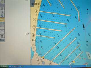 Landen! Diesmal drueckt mich der ablandige Wind geradezu in die "Parkluecke",